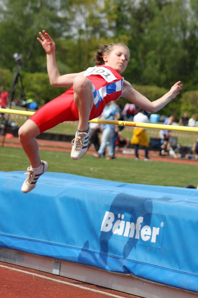 Kristin Rudolph 1. im Weitsprung, 1. im Hochsprung, 1. im Dreisprung, 3. über 100m
